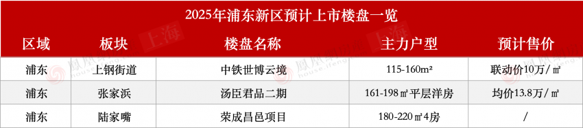 浦东新区明年待入市高端改善项目共3个,以全新盘居多。