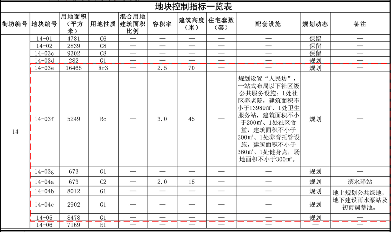 公共服务设施配套上,规划在 14-03f地块设置社区级公共服务设施 “人民坊”,将社区养老院、养育托管设施、卫生服务站、社区食堂、健身点等功能一站式整合布局,为居民生活提供便利。